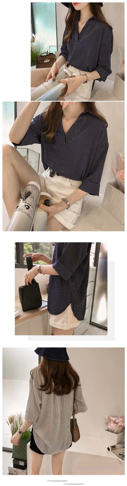 25分鐘前新品上市,勁爆特殺!全場大放送,單件低至NT$432,2020新款夏裝中長款韓版寬松顯瘦條紋襯衫女七分袖,廠家直銷,超值優惠,買到賺到!過後漲價! - 【超級氣質條紋襯衫】任選1件 僅需NT$899