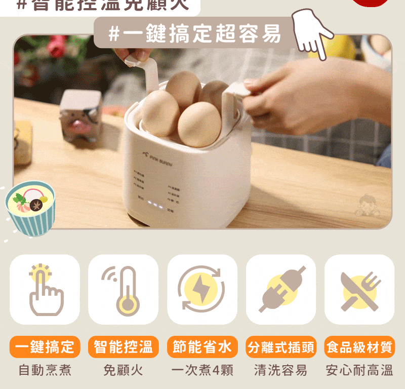 15分鐘前Pink Bunny智能煮蛋機智能控溫烹煮,營養美味輕鬆上桌 - Pink Bunny智能煮蛋機1入組 NT$1090