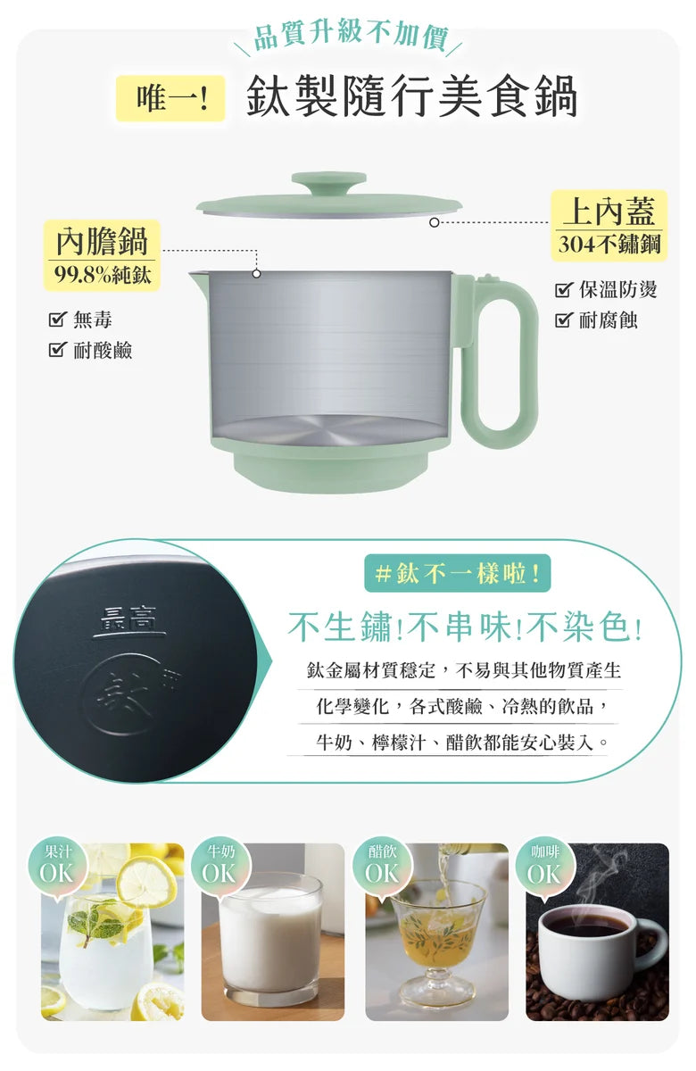 7分鐘前【熱銷5000萬】便携快煮壶,全球寬電壓,小鍋大本事,走到哪都能煮 - 特價售價NT$1590